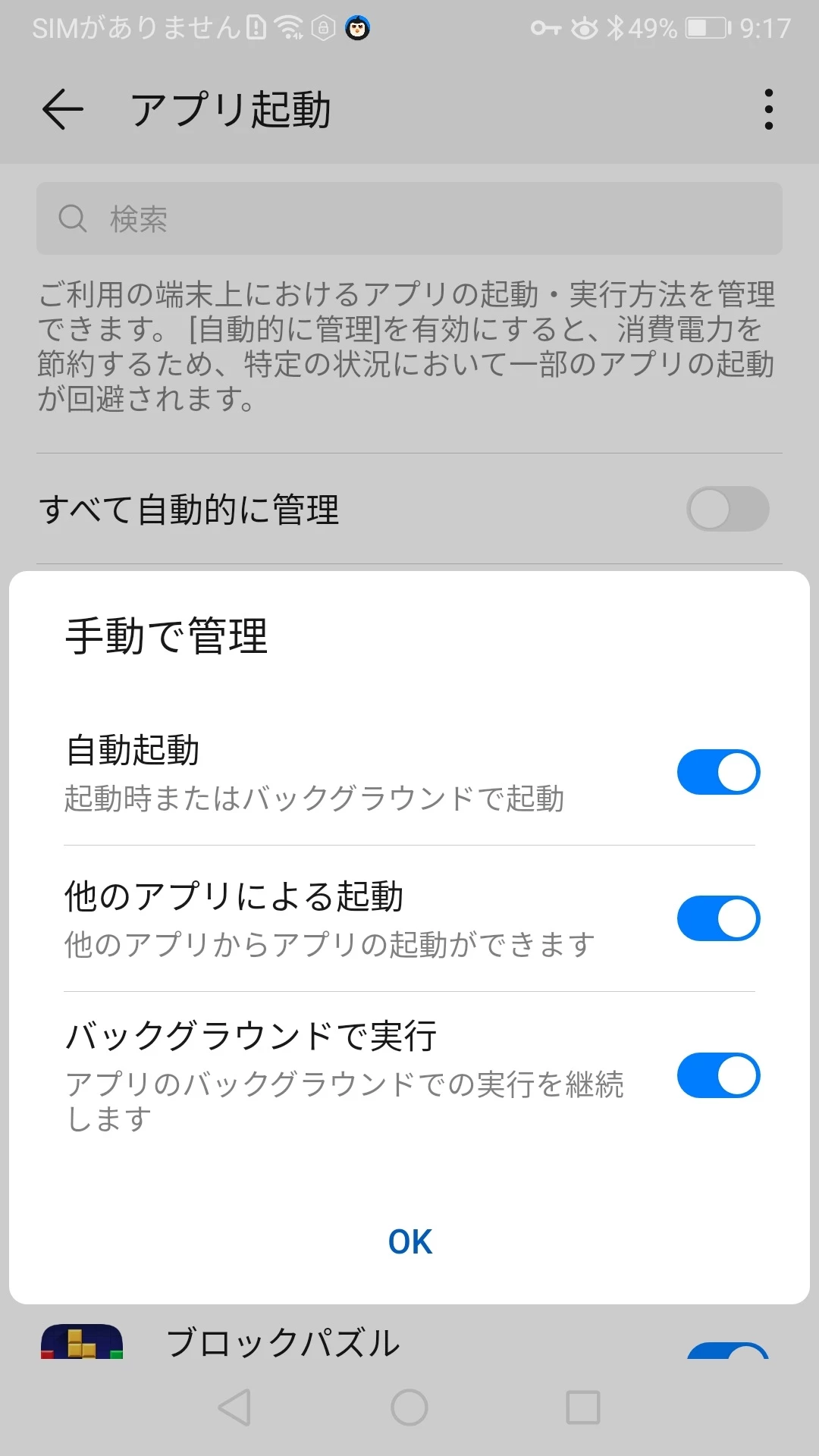- 電話の設定アプリを開く > 「バッテリー」セクションを開く > 「アプリ起動」を選択 > Krohaペアレンタルコントロールアプリを見つける > Krohaペアレンタルコントロールアプリの名前の横にあるトグルをオフにする > 「手動制御」ウィンドウが表示されます。このウィンドウでは、すべてのトグルが有効になっている必要があります:『自動実行』、『間接的な起動』、『バックグラウンドでの実行』;