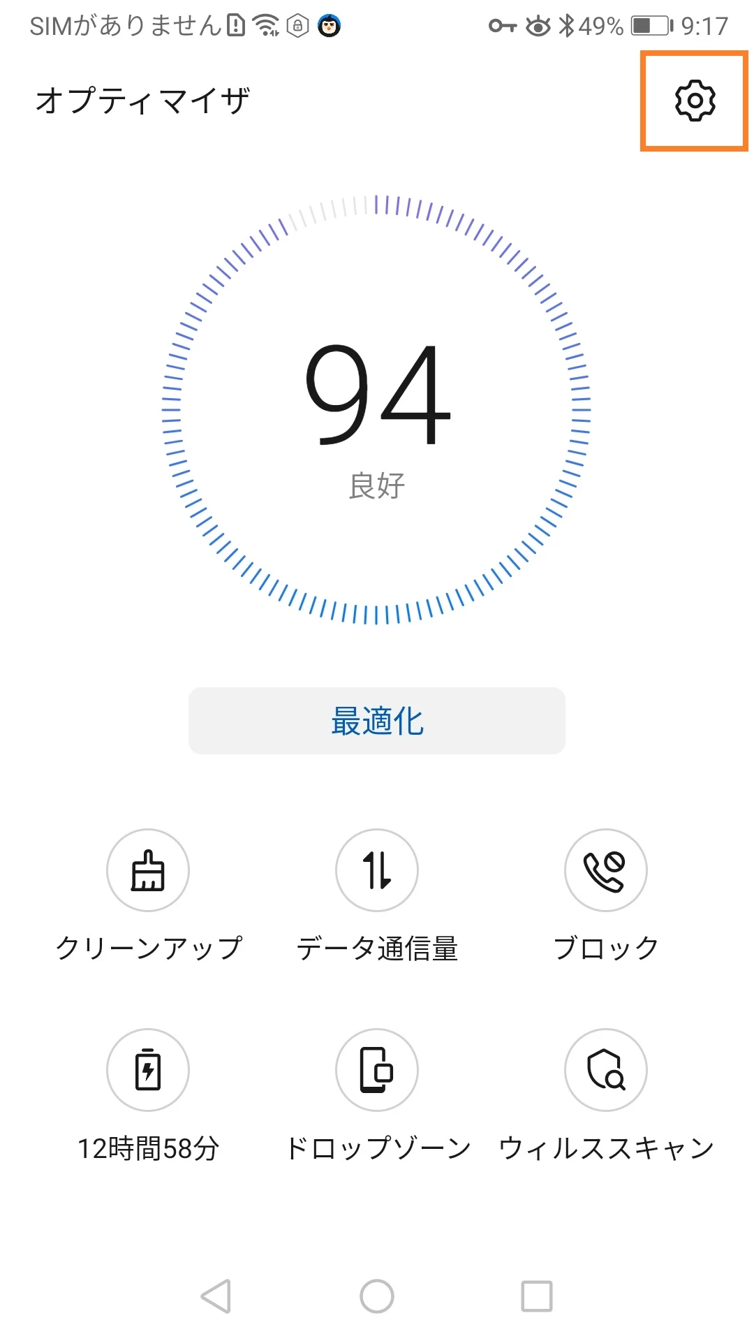 - Phone Manager(最適化)アプリを開く > 設定アイコンをタップ > 「自動クリーン」を無効にします。