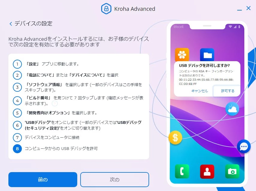 Kroha Advanced ペアレンタルコントロールアプリのインストールに関する問題