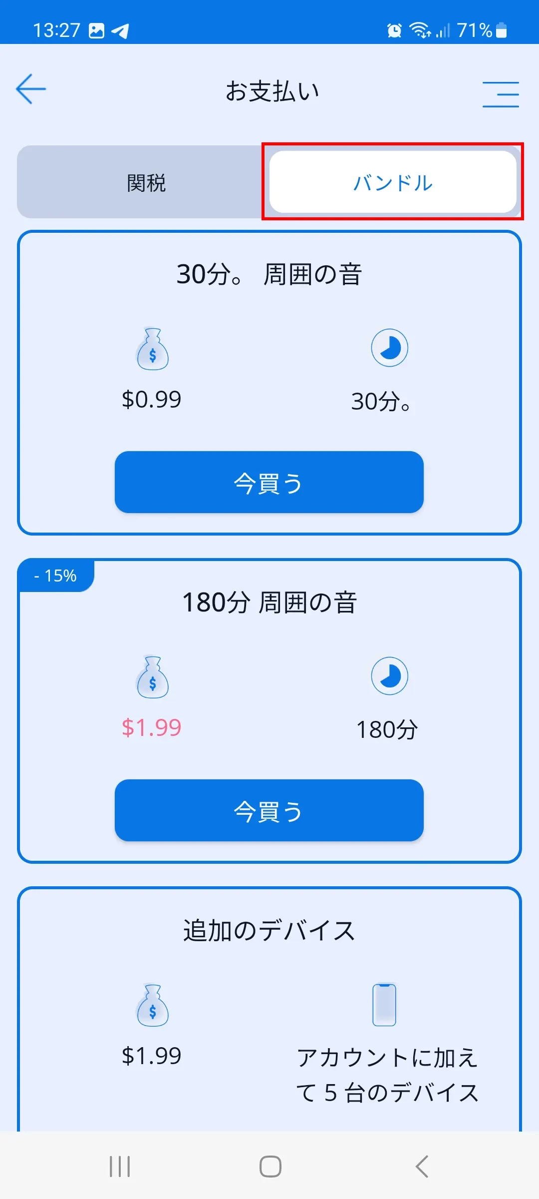 アカウントに追加のデバイスを追加したり、「子供の周囲の音」機能の追加分の分数パッケージを購入したり、「スクリーンキャプチャ」機能の追加パッケージを購入することができます。追加サービスの支払いは、Krohaペアレンタルコントロールアプリの「支払い」セクション(「バンドル」タブ)で行うことができます。