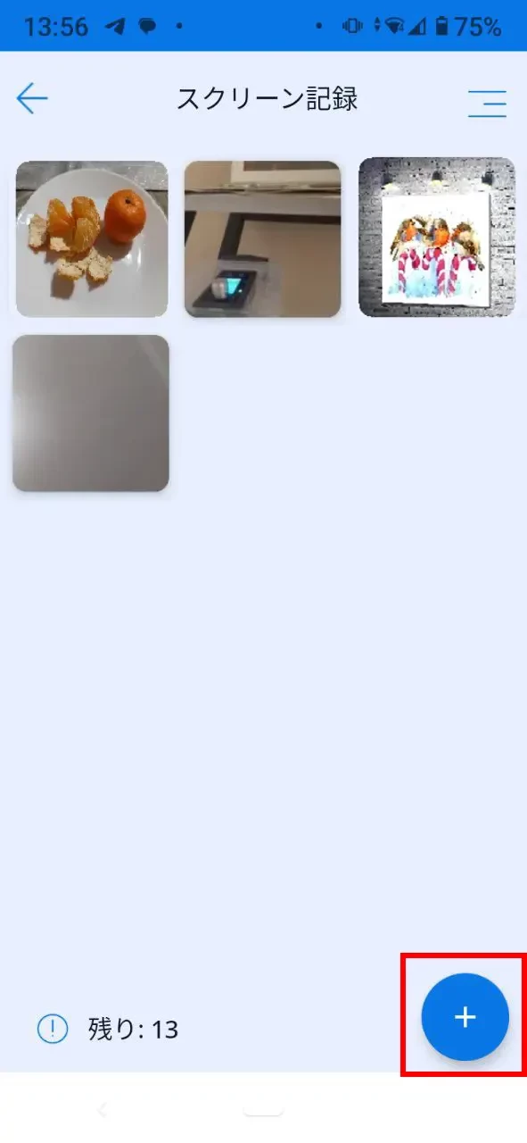 写真が撮られると、スクリーンショットのリストに表示されます。子供の画面やカメラから別の写真を撮るには、右下の「+」をタップします。