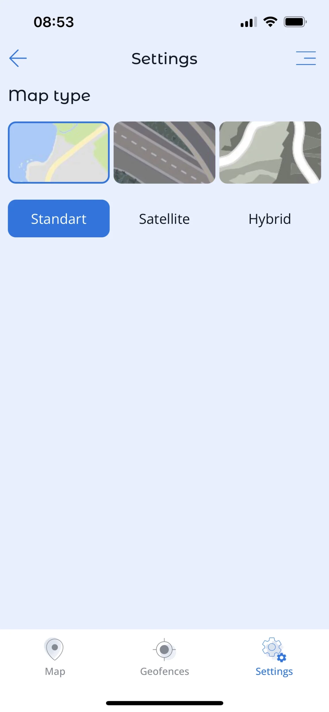 スマートフォン画面の左下隅にある「位置情報」セクションでは、子供のジオロケーションが最後に更新された日時を確認できます。データが期限切れの場合は、「更新」ボタンをクリックする必要があります。設定に移動することで、マップの表示モードをハイブリッド、衛星、または標準に変更できます。