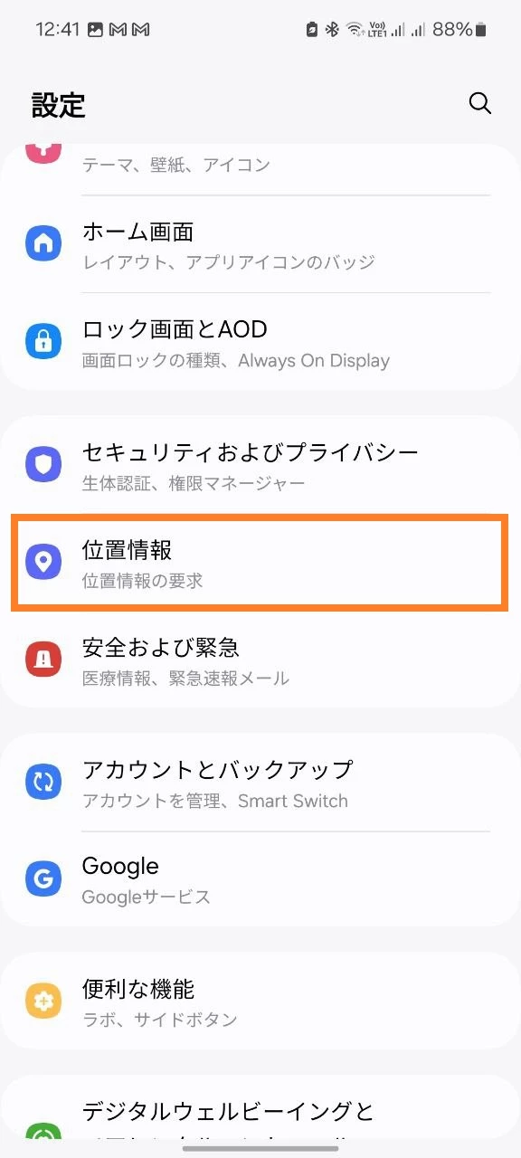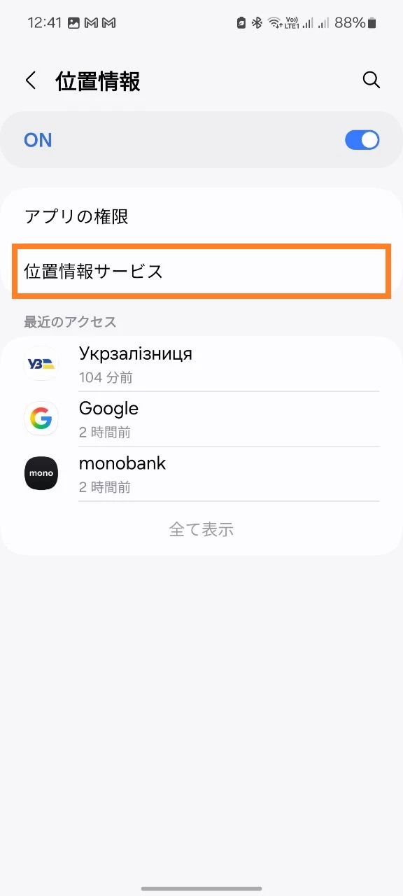 - 「GPS衛星」オプションを選択します(デバイスによっては「位置情報」または「位置情報サービス」または「詳細設定」と表示されている場合があります);