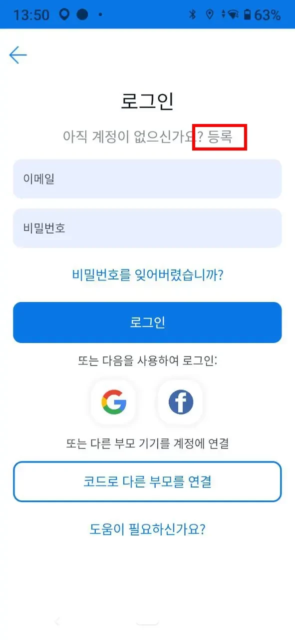 앱을 설치한 후에는 Kroha 자녀 보호 기능을 사용하기 위해 짧은 등록 과정을 거쳐야 합니다.