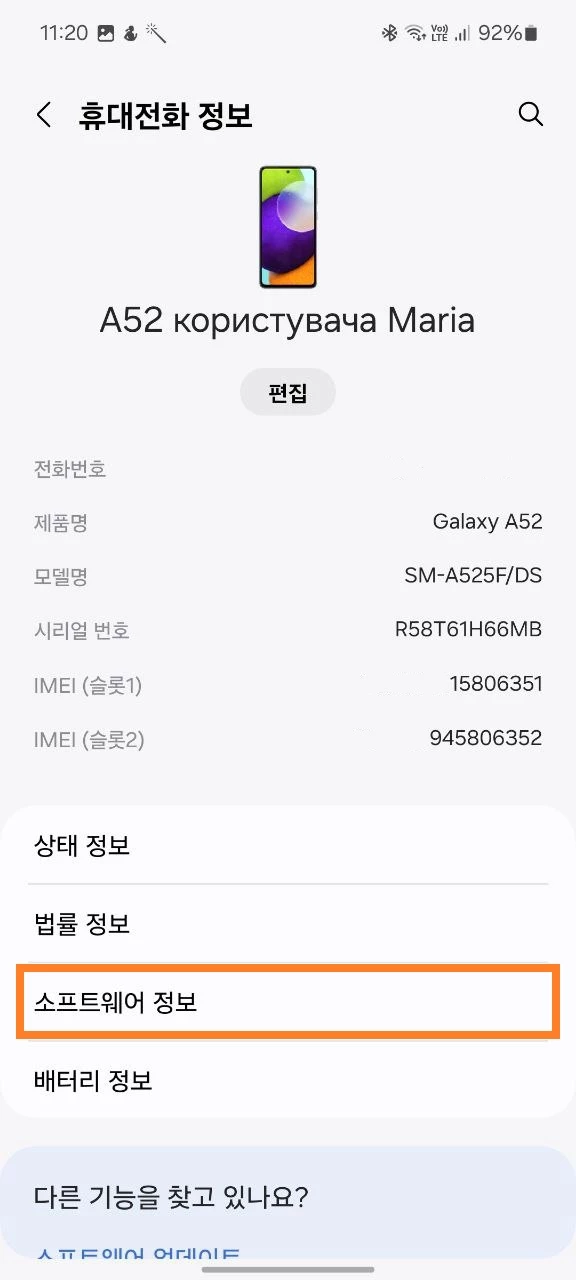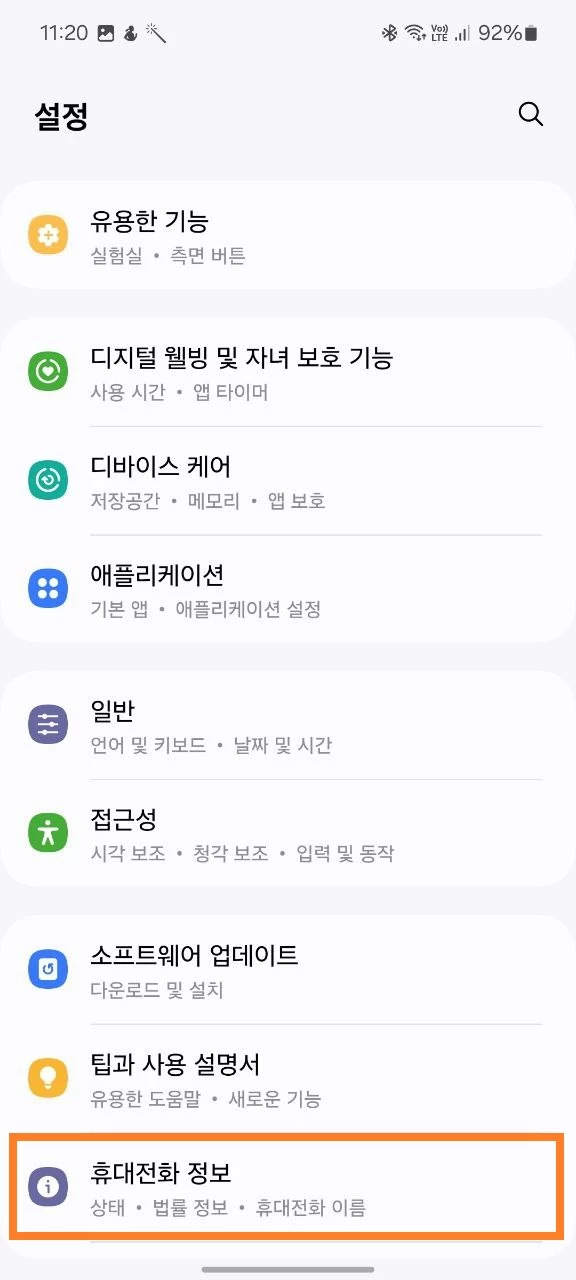 “휴대전화 정보” 섹션으로 이동;