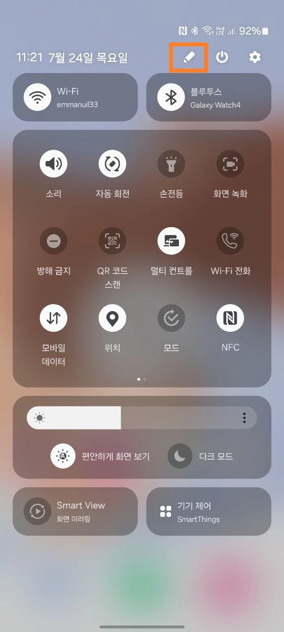 1. 자녀의 기기에서 알림 표시줄의 설정을 열고 편집을 탭합니다.