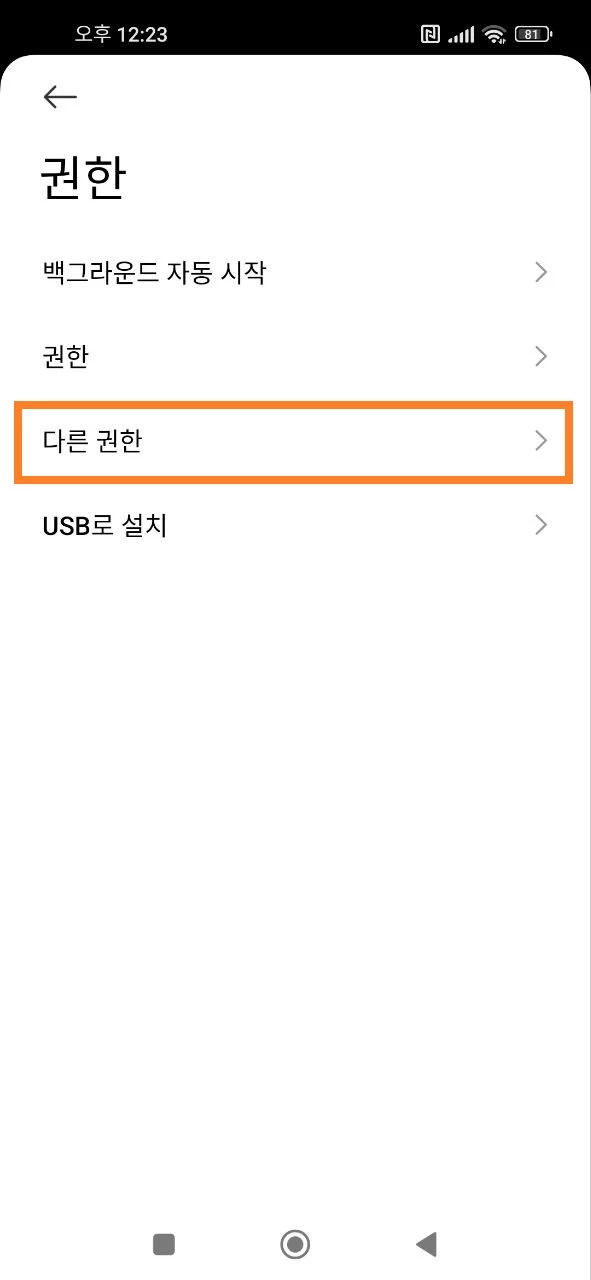 - 자녀의 기기에서 설정 앱을 열고 > 앱 섹션을 열고 > 권한 > 기타 권한 > 권한 탭 > 잠금 화면, 백그라운드에서 실행 중일 때 팝업 표시, 팝업 권한을 하나씩 선택하여 Kroha 자녀 보호 앱의 권한을 활성화하세요.