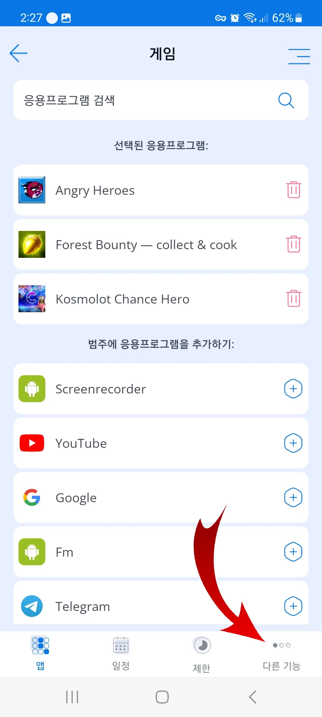 부모는 항상 일일 제한을 변경할 수 있습니다. Kroha 부모 통제의 유연한 설정을 통해 부모는 필요할 때 게임과 앱의 제한을 변경할 수 있습니다. 부모는 화면 오른쪽 하단에 있는 추가 메뉴(세 개의 점)에서 필요한 제한을 설정할 수 있습니다.