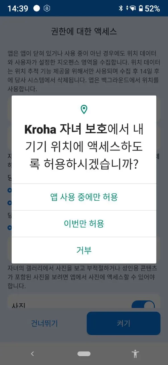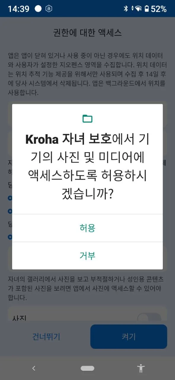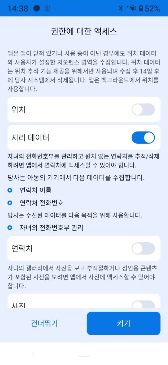 “연락처 접근”: 자녀의 스마트폰에 있는 연락처를 보고 관리하고 싶을 경우.