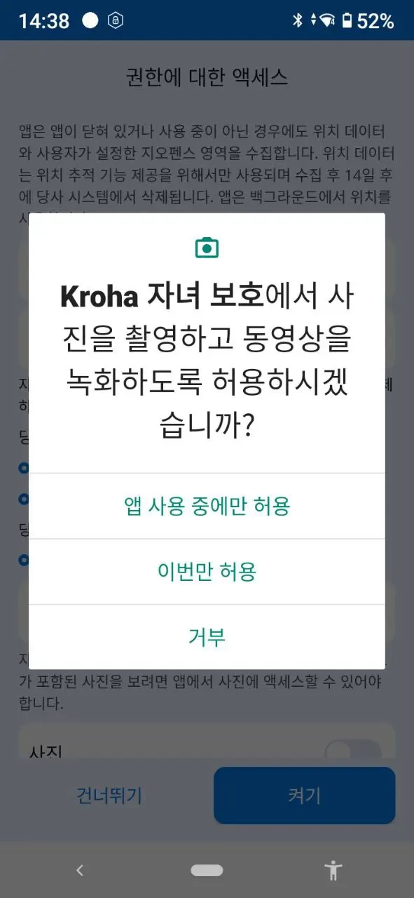 “사진 및 비디오 촬영”, “멀티미디어 접근”: 자녀가 촬영한 최신 사진과 갤러리에 저장된 사진을 받고 싶을 경우;