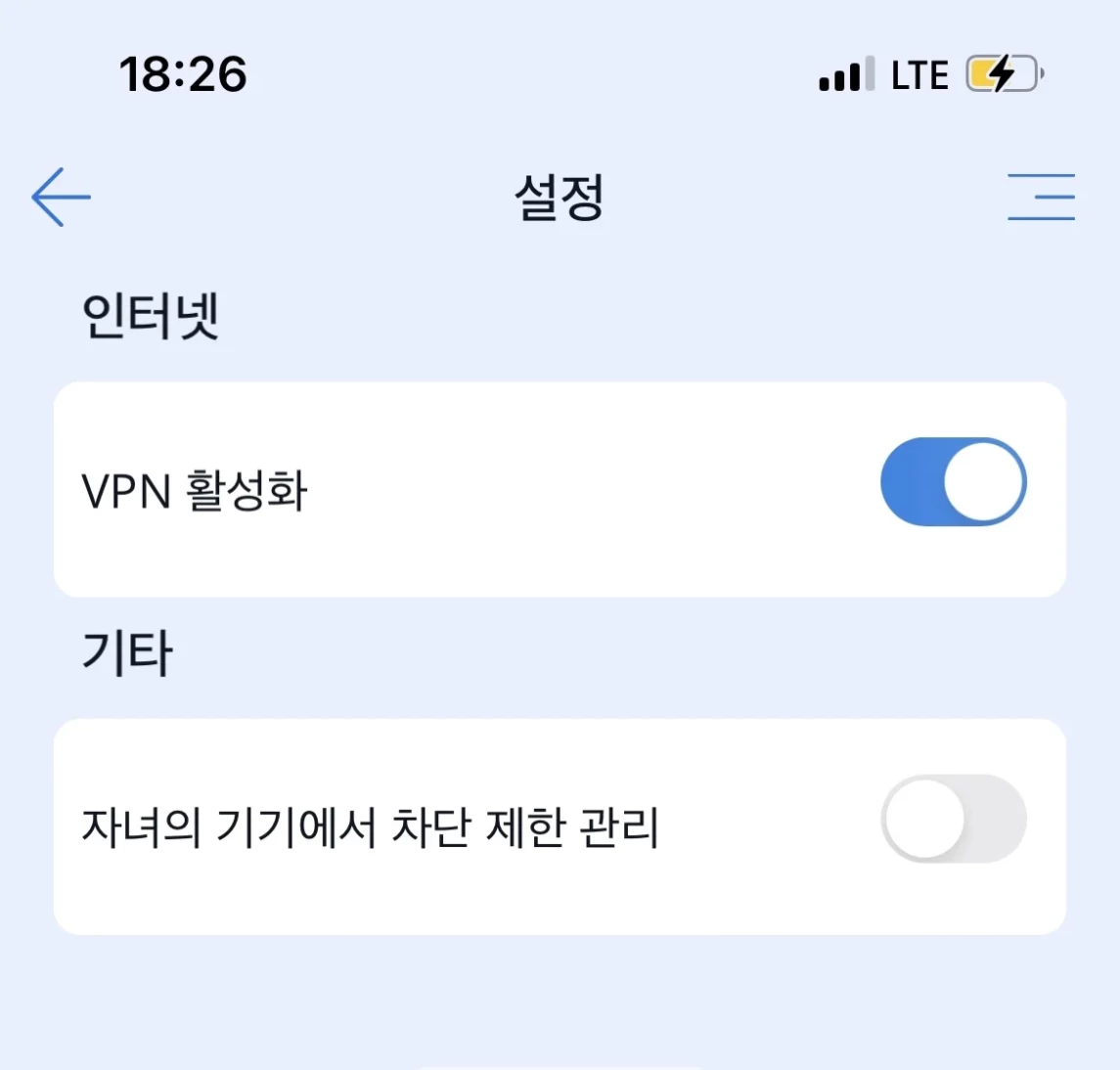 Kroha 부모 통제 앱의 "설정"에서, 부모는 "성인 콘텐츠 차단"과 "장치에서 제한 관리 잠금"을 활성화할 수 있는 옵션을 선택할 수 있습니다.