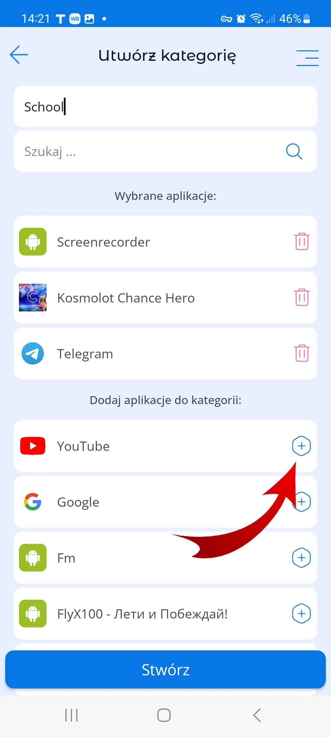 Rodzice mogą również utworzyć własną kategorię i zamieścić tam aplikacje, do których dostęp należy ograniczyć.