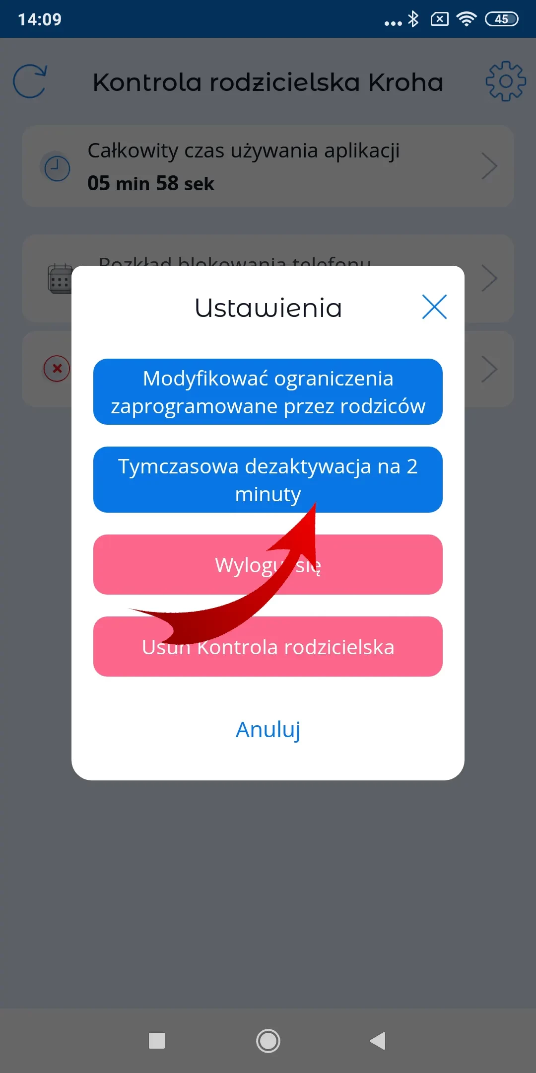 Blokujemy dostęp do ustawień po to, by dziecko nie mogło usunąć aplikacji Kroha ze swojego smartfonu lub zmienić na przykład datę i czas, aby ominąć ograniczenia.