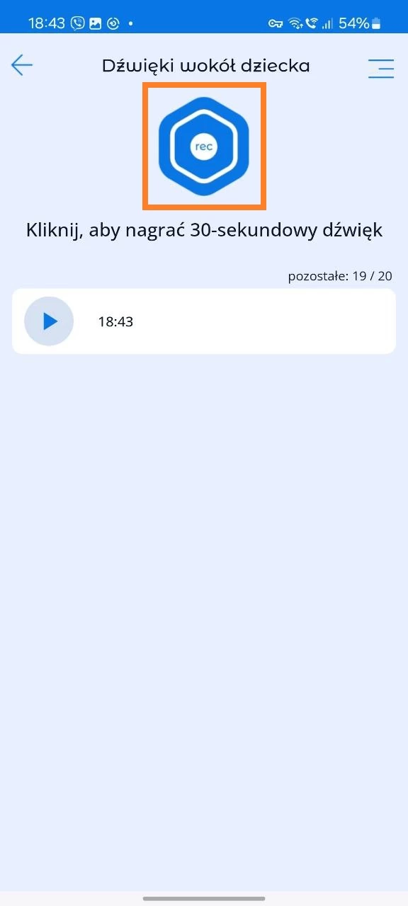 - Nagrywanie 30-sekundowych dźwięków z urządzenia dziecka.