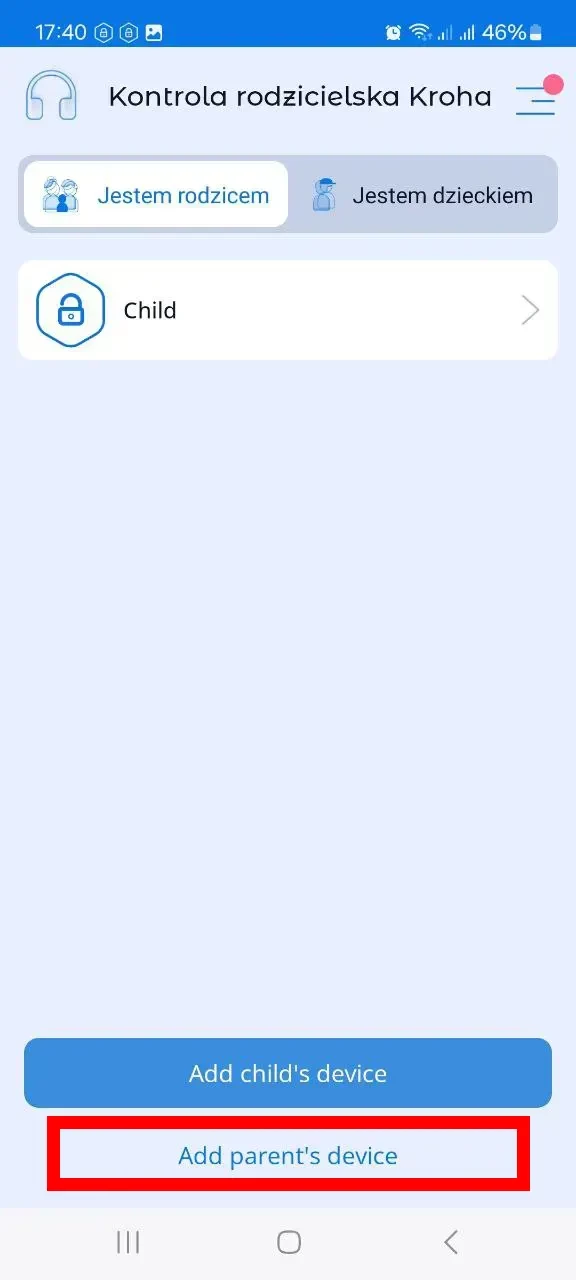 2. Naciśnij przycisk „Dodaj urządzenie rodzica”;