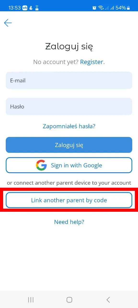 5. Otwórz aplikację na smartfonie drugiego rodzica;