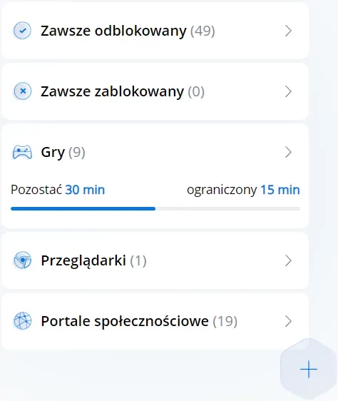 By móc ustawić wszystkich powyższych ograniczeń, należy skorzystać z funkcji „Blokowanie aplikacji” znajdującej się w menu naszej aplikacji.