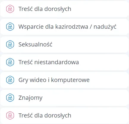 3. Zablokowanie kategorii stron internetowych, na których znajdują się treści zakazane dla dziecka (tylko na Androidzie).