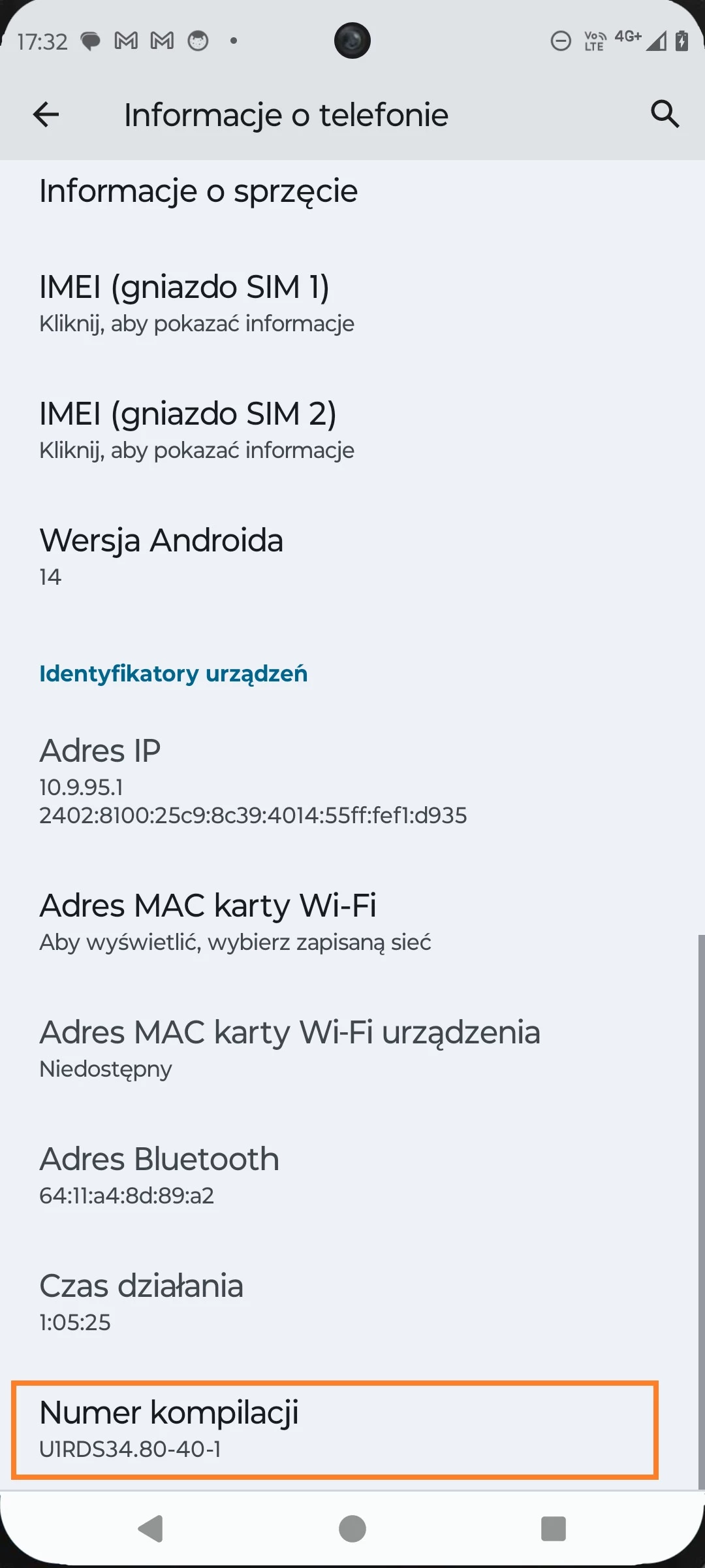 - Znajdź punkt „Numer kompilacji” i szybko naciśnij go 5-8 razy;