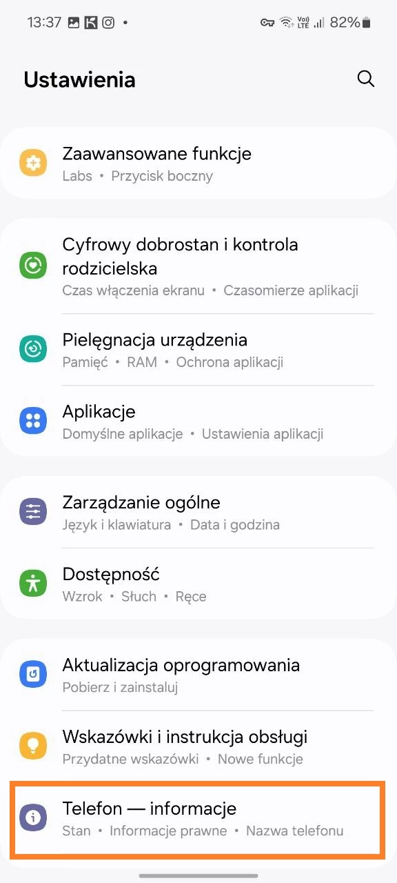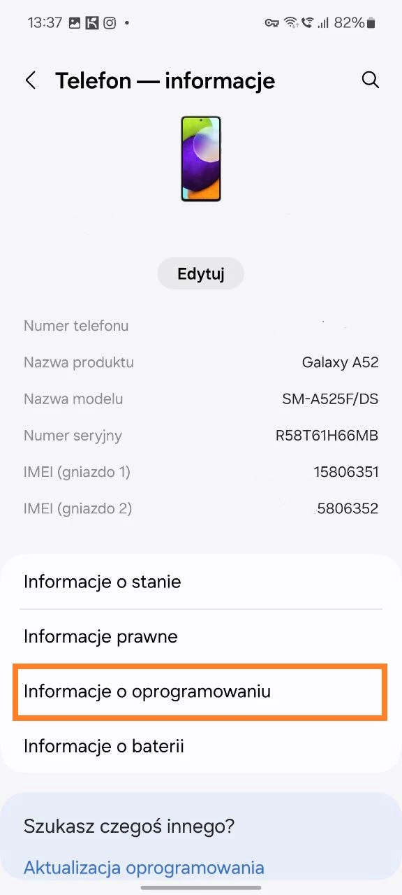 - Przejdź do rozdziału „Informacje o telefonie”;