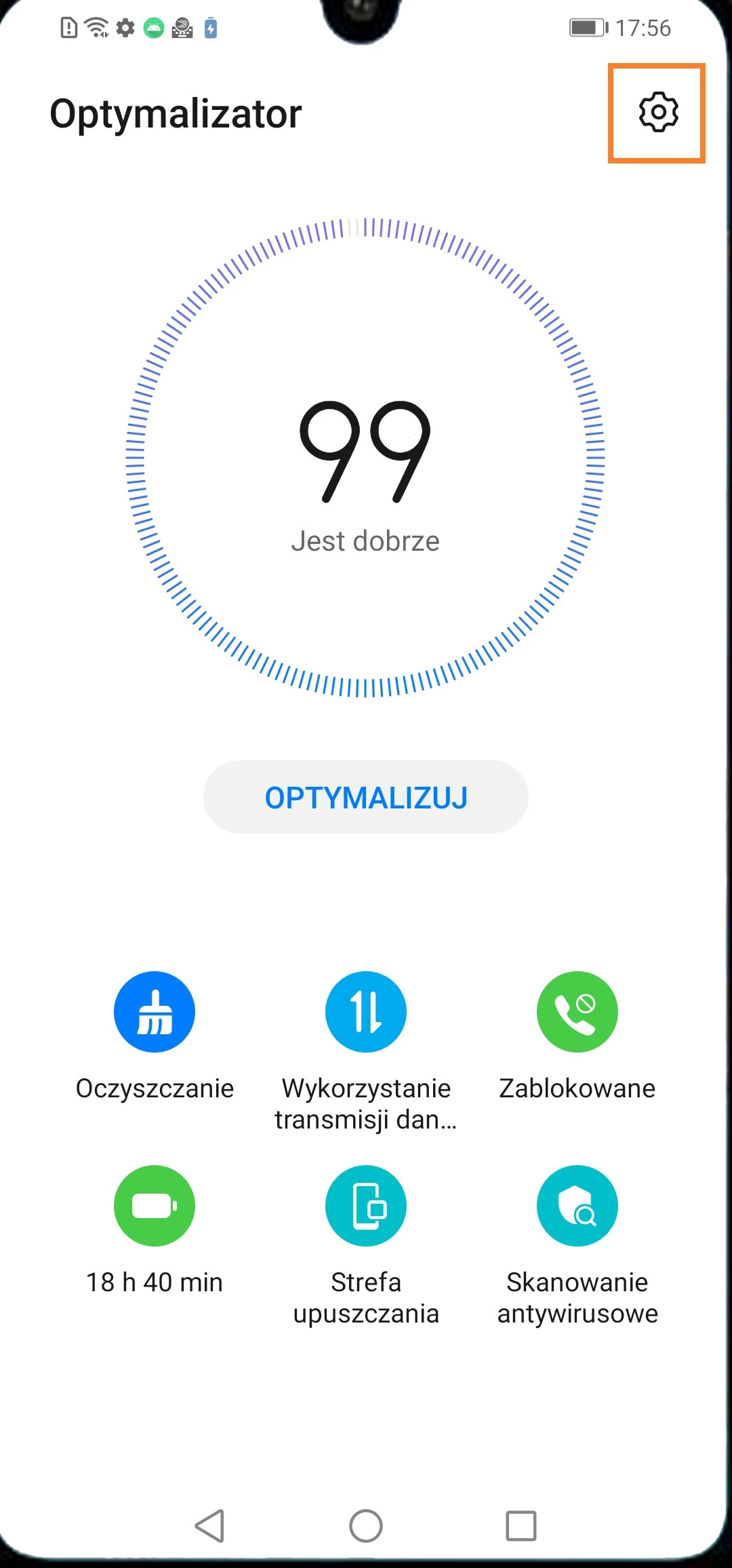 - Otwórz aplikację „Menedżer telefonu” (lub „Optymalizator”) > naciśnij na ikonę „Ustawienia” > wyłącz „Automatyczne czyszczenie”.