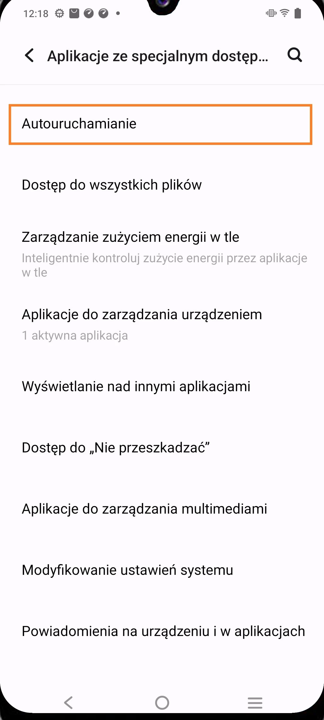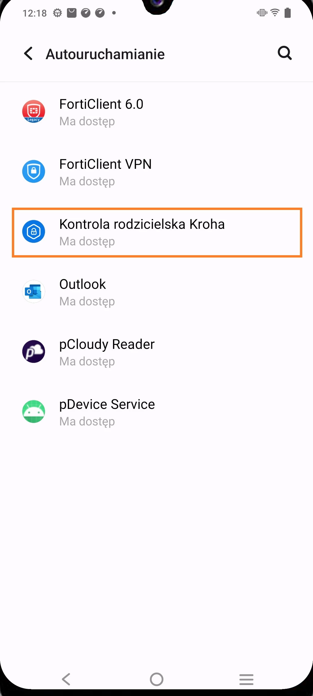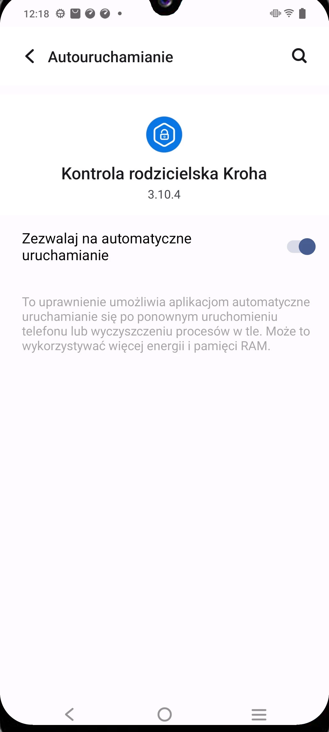 - Otwórz aplikację „Ustawienia” na telefonie dziecka > przejdź do rozdziału „Aplikacje” > „Zarządzanie uprawnieniami” (lub „Aplikacje ze specjalnym dostępem”) > Automatyczne uruchamianie > znajdź aplikację „Parental Control Kroha” > włącz.
