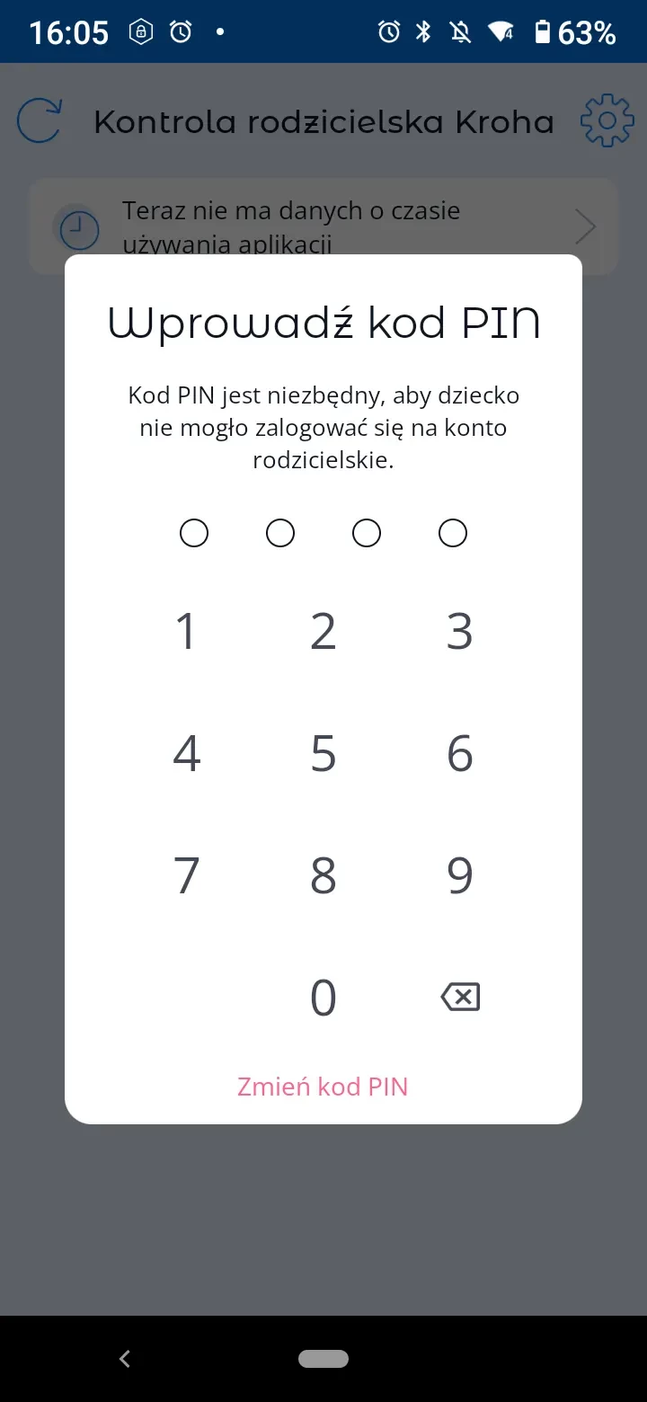 Kod PIN na różnych telefonach może się różnić. Jeśli zmienisz kod PIN na swoim urządzeniu, nie zmieni się na urządzeniu dziecka i odwrotnie – to trzeba uwzględnić przy próbach jego zmiany.