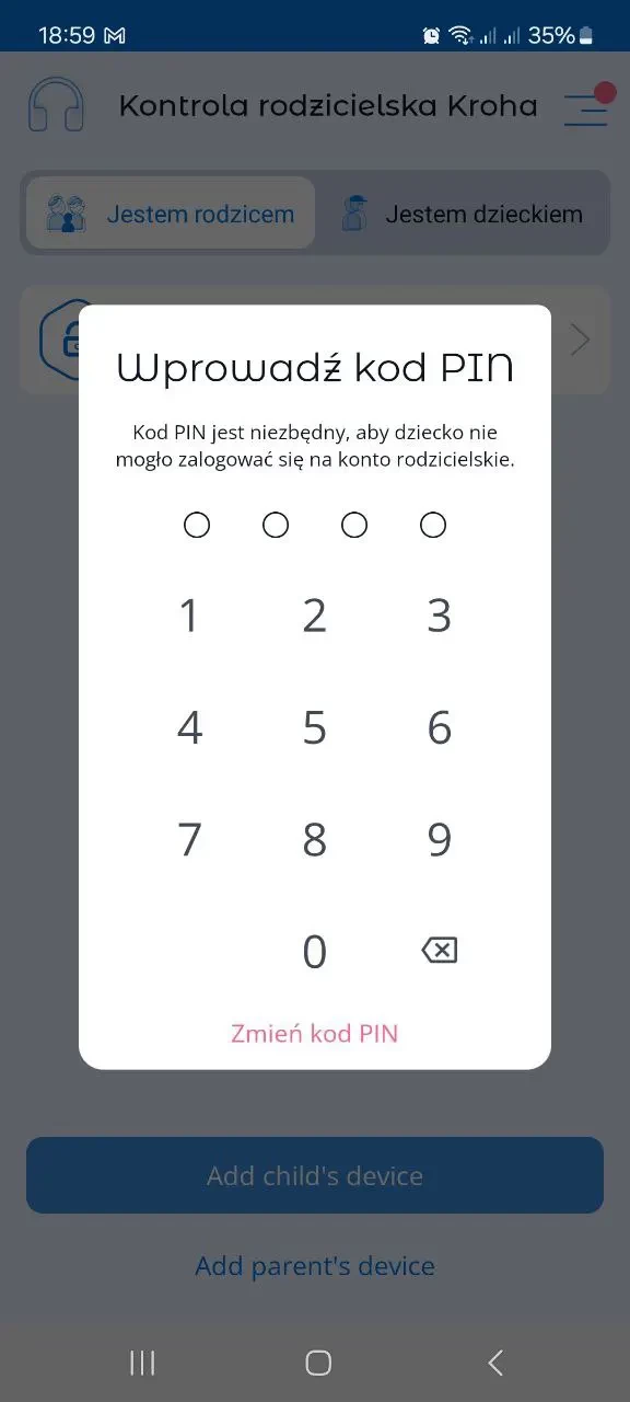 Jak zmienić kod PIN na telefonie rodzica?