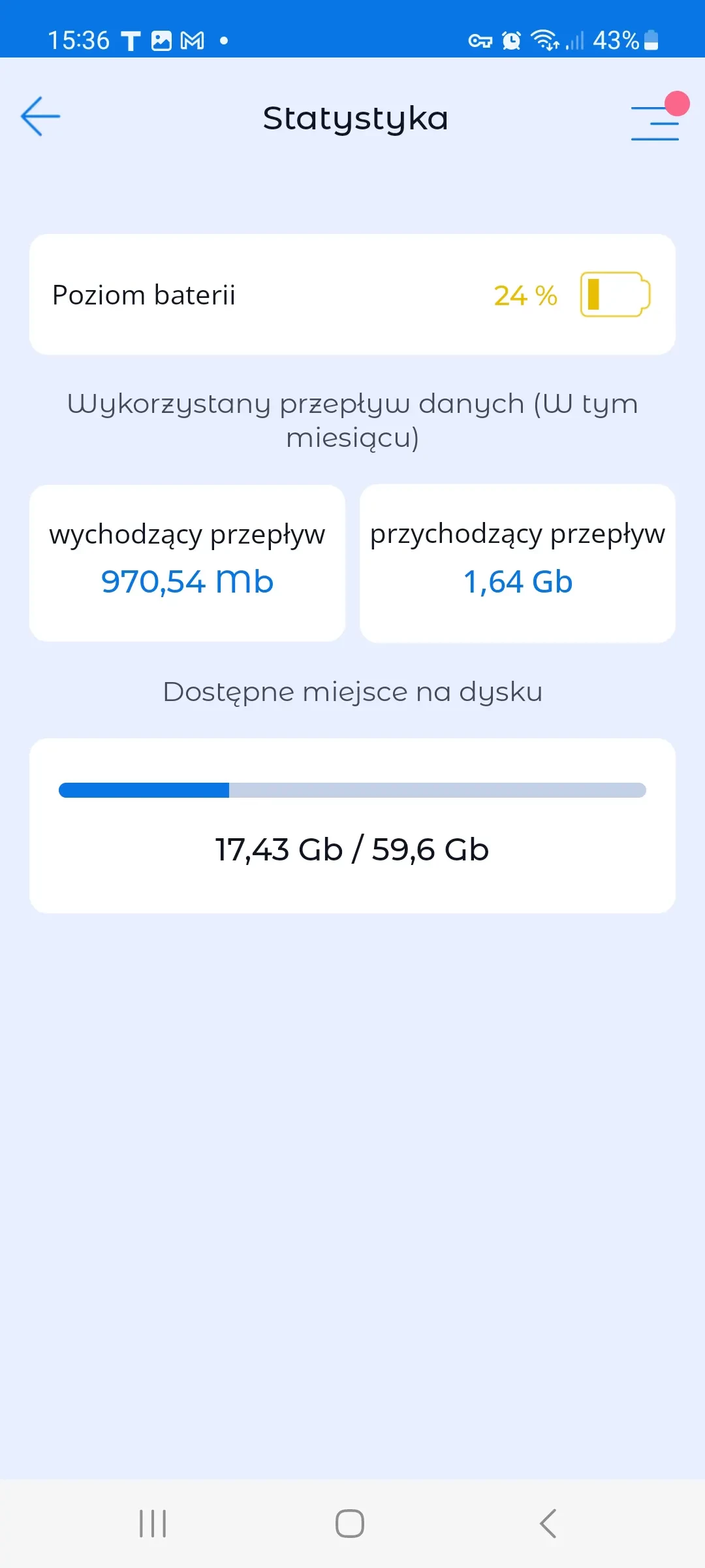 Przeglądanie poziomu naładowania baterii, zużycia danych internetowych, dostępnej pamięci na smartfonie dziecka.