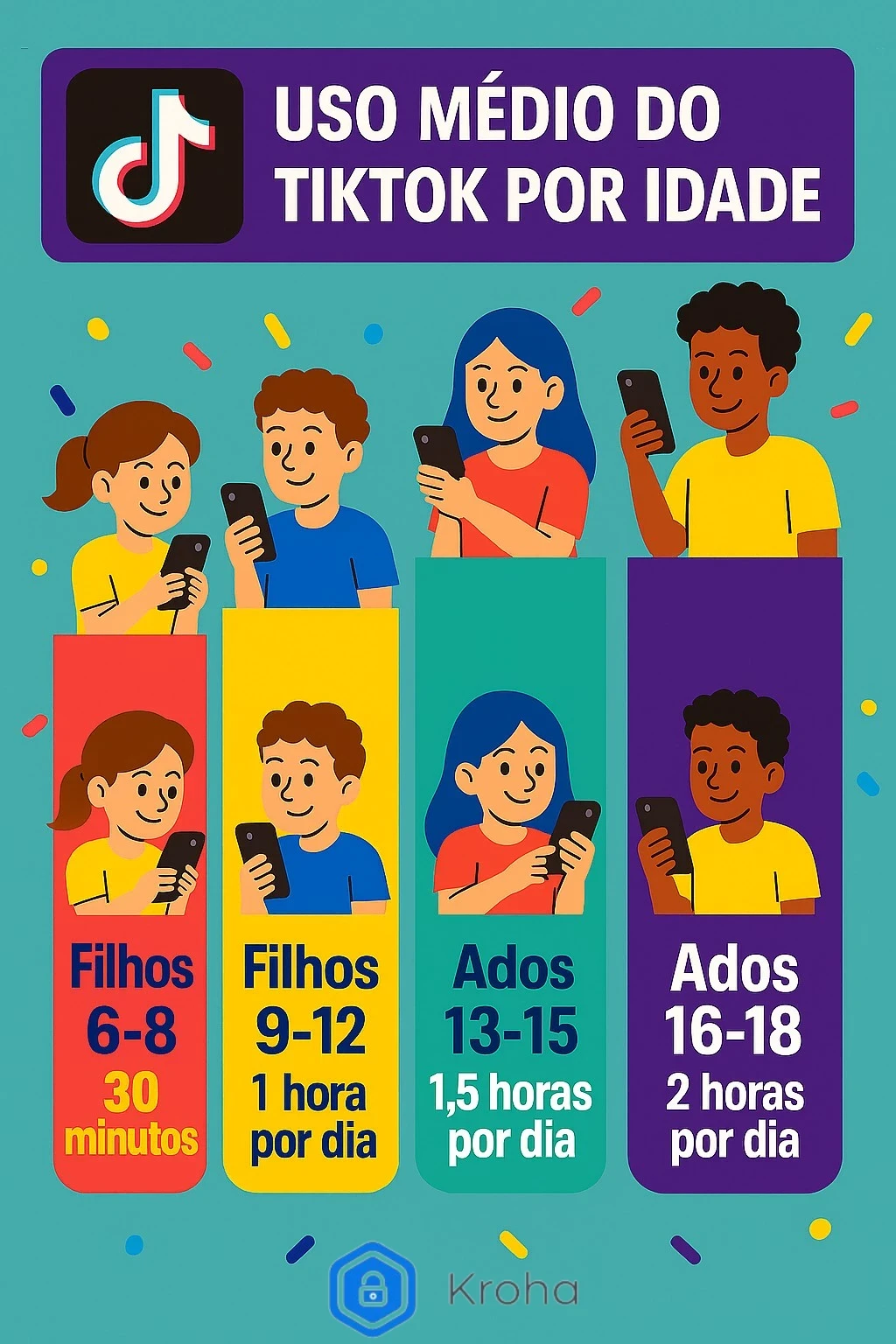 Caso prático: A família Rodrigues instalou o Kroha e configurou o bloqueio do TikTok no celular da criança das 21h00 às 7h00, o que permitiu à criança manter um sono de qualidade e focar nos estudos durante o dia.
