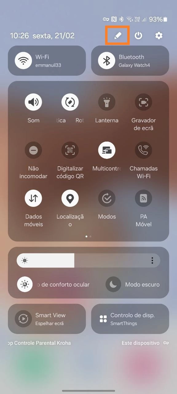 1. Abra as configurações na barra de notificações no dispositivo da criança e toque em editar.