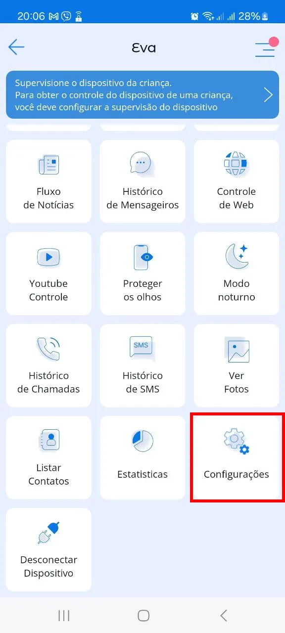 2. Remova algumas configurações do smartphone que podem restringir o funcionamento do aplicativo Kroha para monitorar celular. Por exemplo: