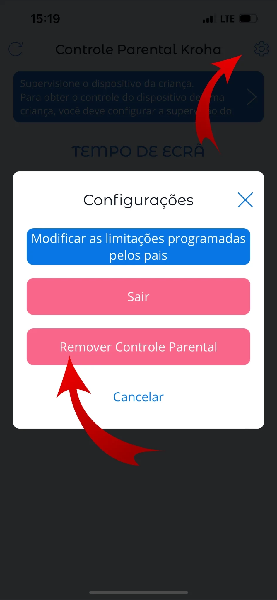 Vá para Ajustes no dispositivo do seu filho -> Geral -> Perfis e VPN (ou “Gerenciamento de Dispositivos”) -> Controle Parental Kroha -> Excluir perfil (remover controle).