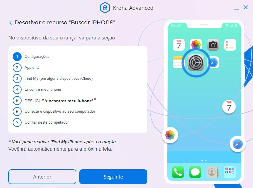 Como desinstalar o Controlo Parental Kroha Advanced (IOS)?