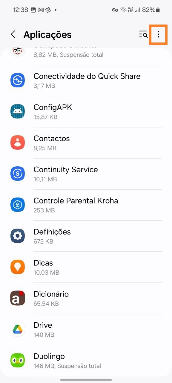 Como fazer o Controle de pais Kroha rodar em segundo plano em Samsung (Android 9 - 10)?