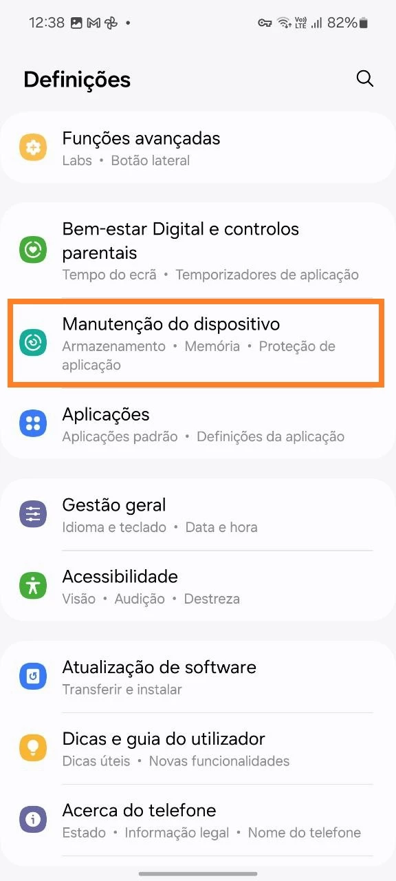 - Volte ao menu raiz do aplicativo Configurações > seção Cuidados do Dispositivo > Vá para Bateria > Restrições de Fundo > Verifique se o app controle de pais Kroha foi adicionado aos apps em espera.