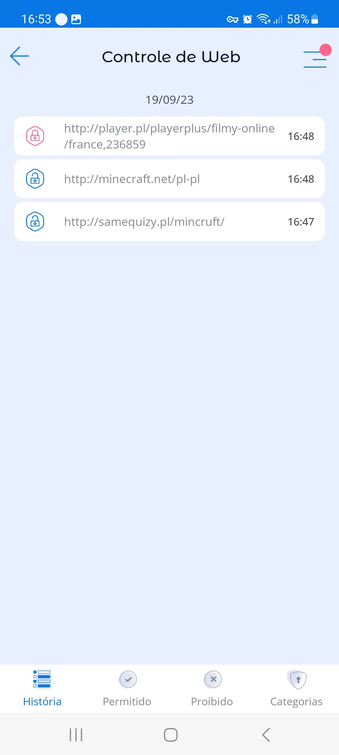 - Visualizar o histórico de navegação dos sites que a criança visitou;