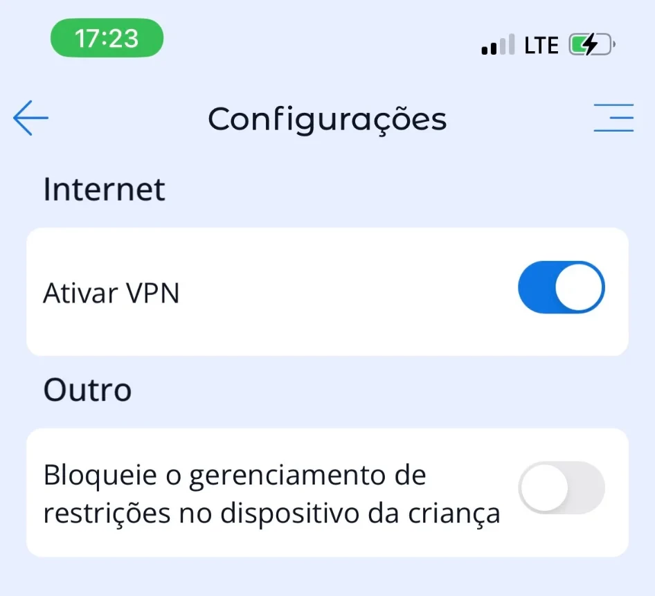 Função "Bloquear Controle de Restrições no Dispositivo". Por padrão, as restrições no dispositivo da criança (limites, bloqueio programado) podem ser alteradas tanto pelo dispositivo dos pais quanto pelo dispositivo da criança. No entanto, você pode ativar a função "Bloquear Controle de Restrições no Dispositivo" para desabilitar a capacidade de alterar as restrições a partir do dispositivo da criança.