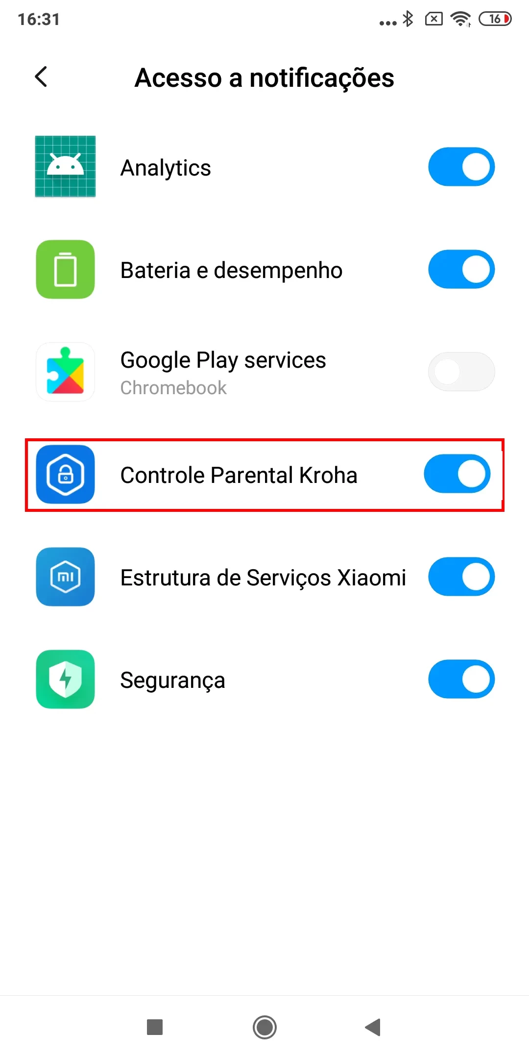 “Autoinício” e “Controle de Atividade em Segundo Plano”: ative esses recursos para que o app de controlo parental Kroha inicie automaticamente quando você ligar seu smartphone e faça o app sempre rodar em segundo plano e controle o dispositivo do seu filho.
