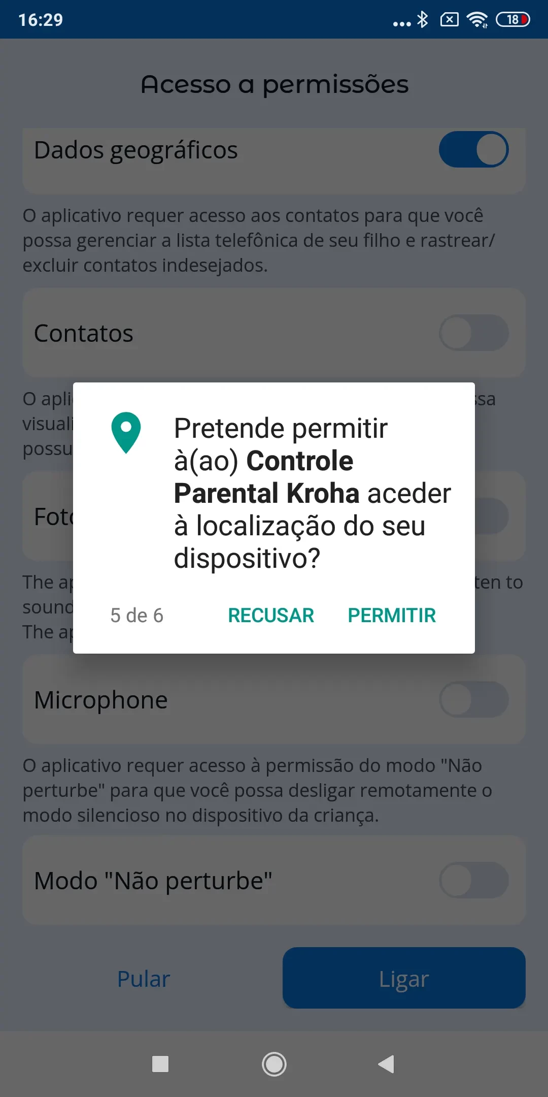 Para que o app de controlo parental Kroha funcione corretamente, você precisa definir permissões ao conectar o dispositivo do seu filho à sua conta.