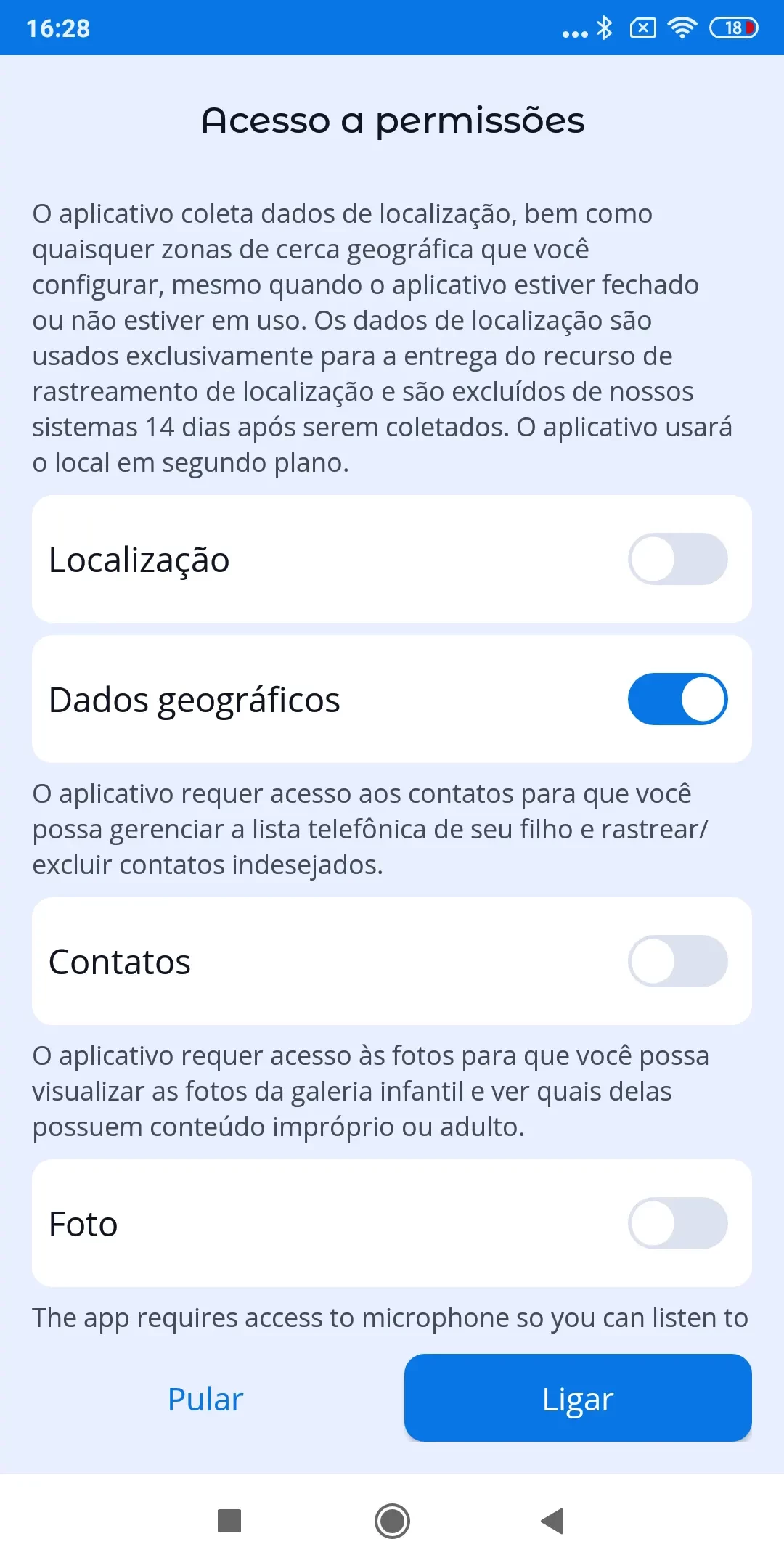 “Acesso aos contatos”: se você deseja ver e gerenciar contatos no smartphone do seu filho;