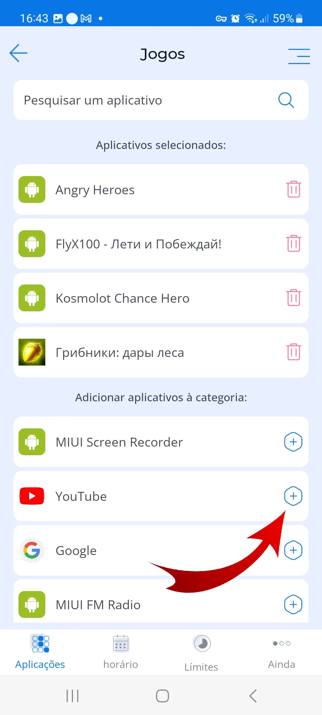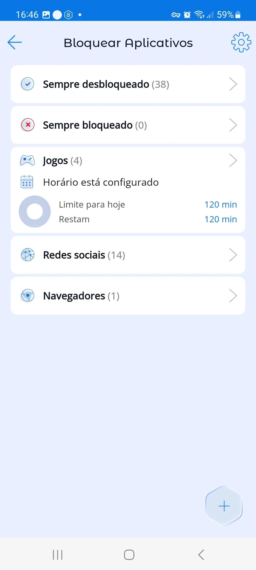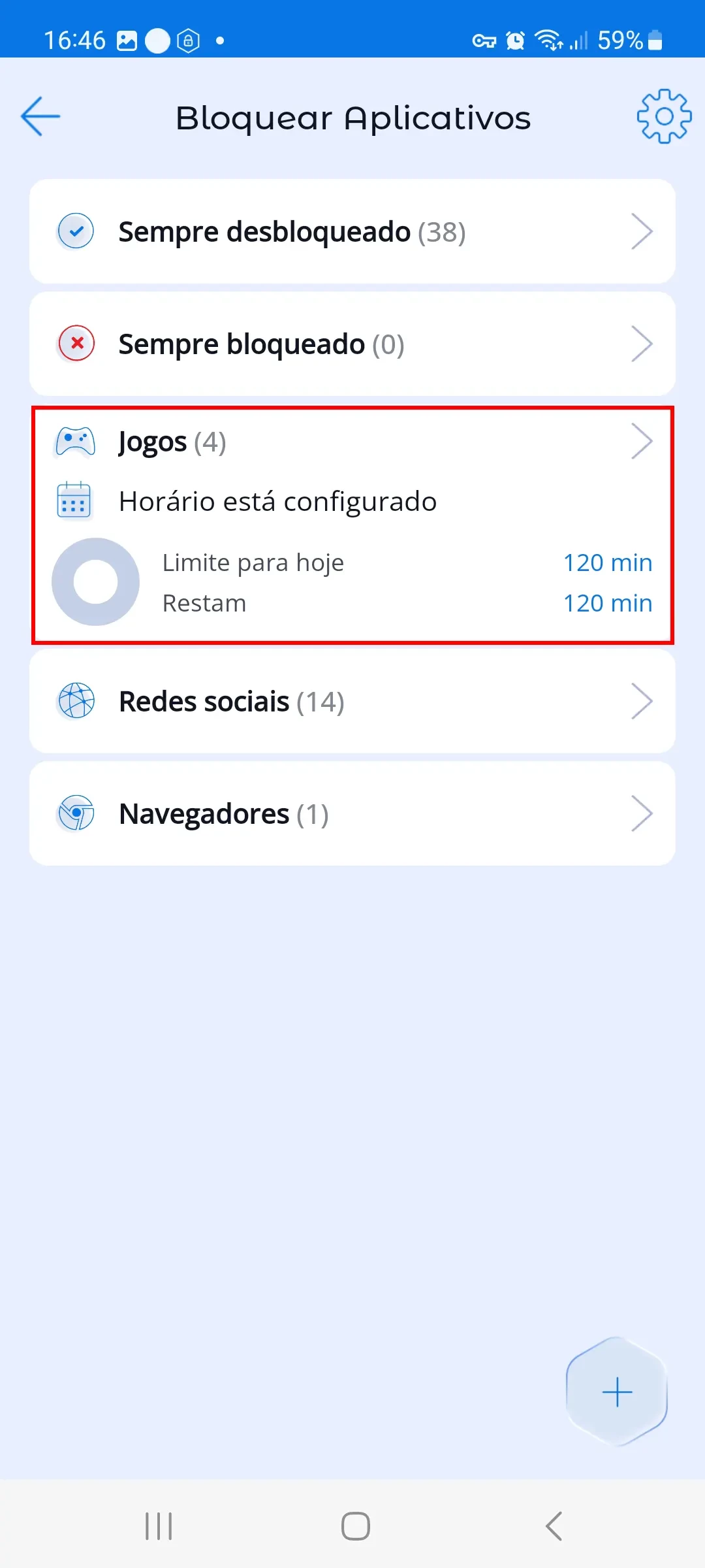 Na seção de bloqueio de aplicativos, todos os aplicativos são categorizados automaticamente de acordo com a classificação da Google Play Store, AppStore e Huawei AppGallery.