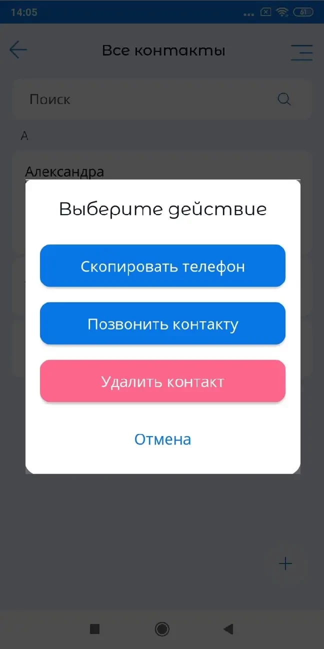 Чтобы удалить или копировать, нажмите иконку «!» рядом с каждым контактом.