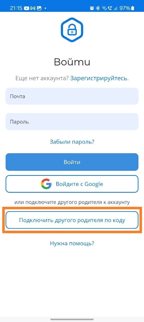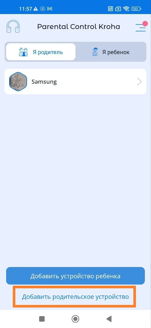 1. Откройте приложение «Родительский контроль Kroha» на устройстве первого родителя;