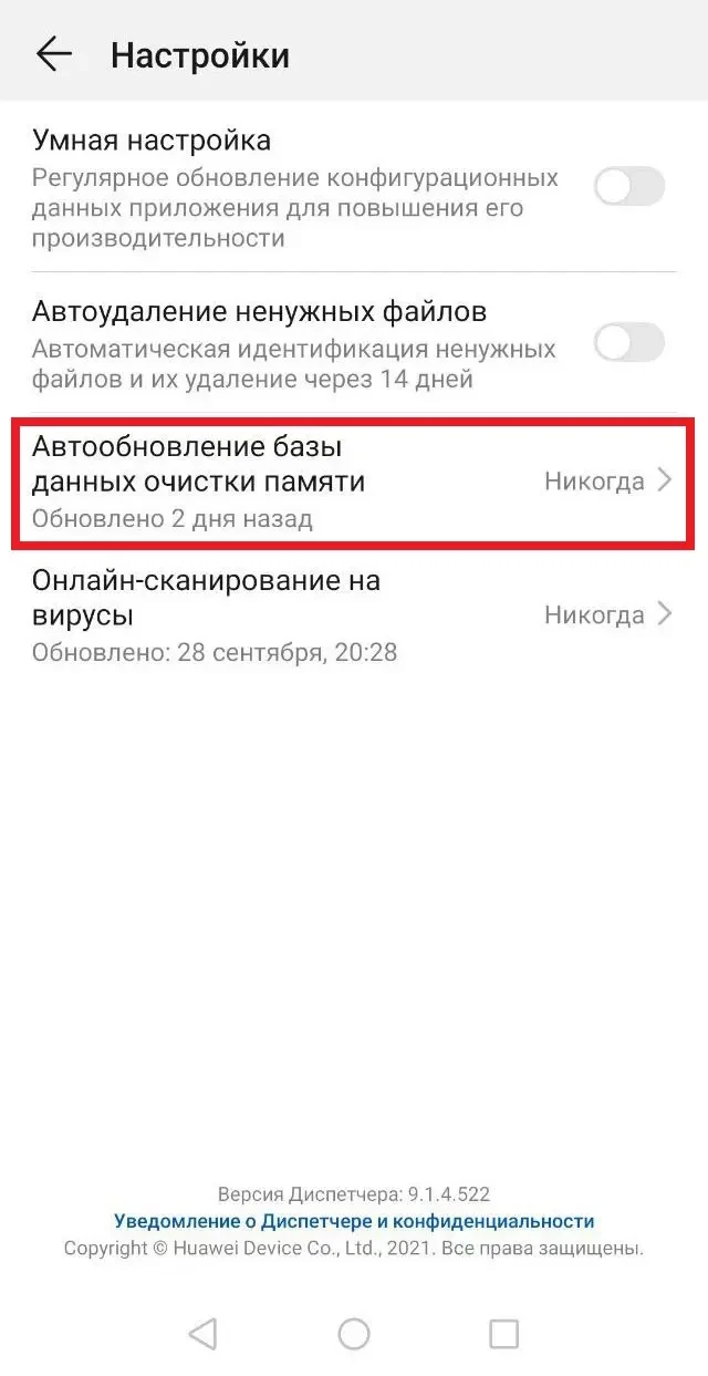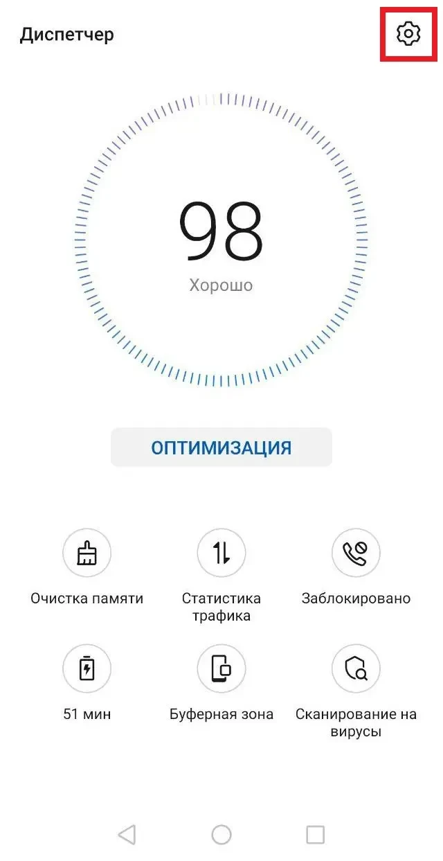 - Откройте приложение "Диспетчер телефона" > нажмите на иконку "Настройки" > отключите "Автоочистка".