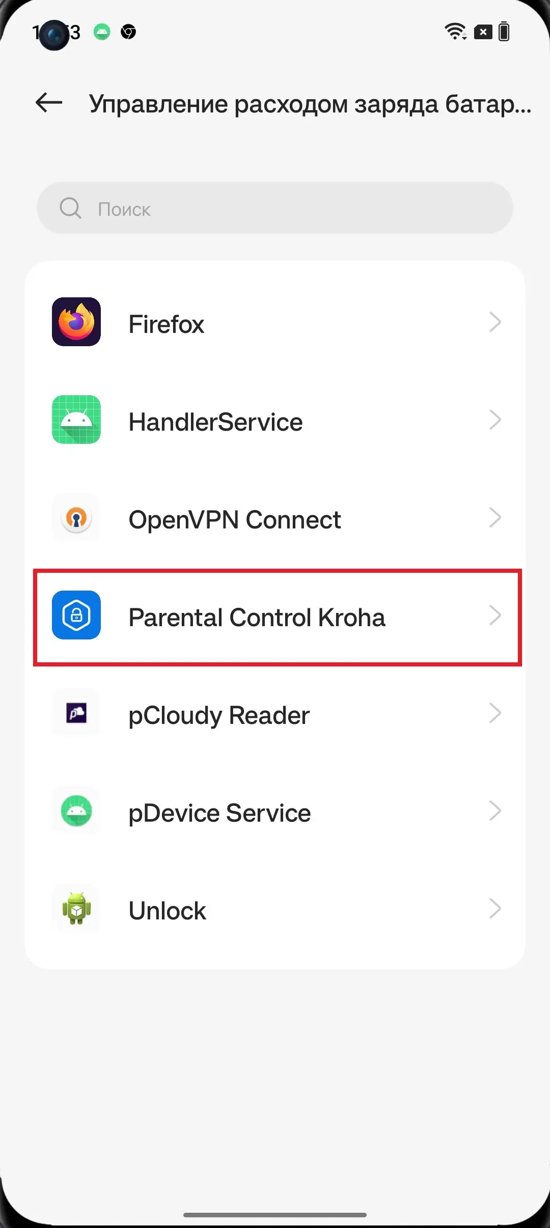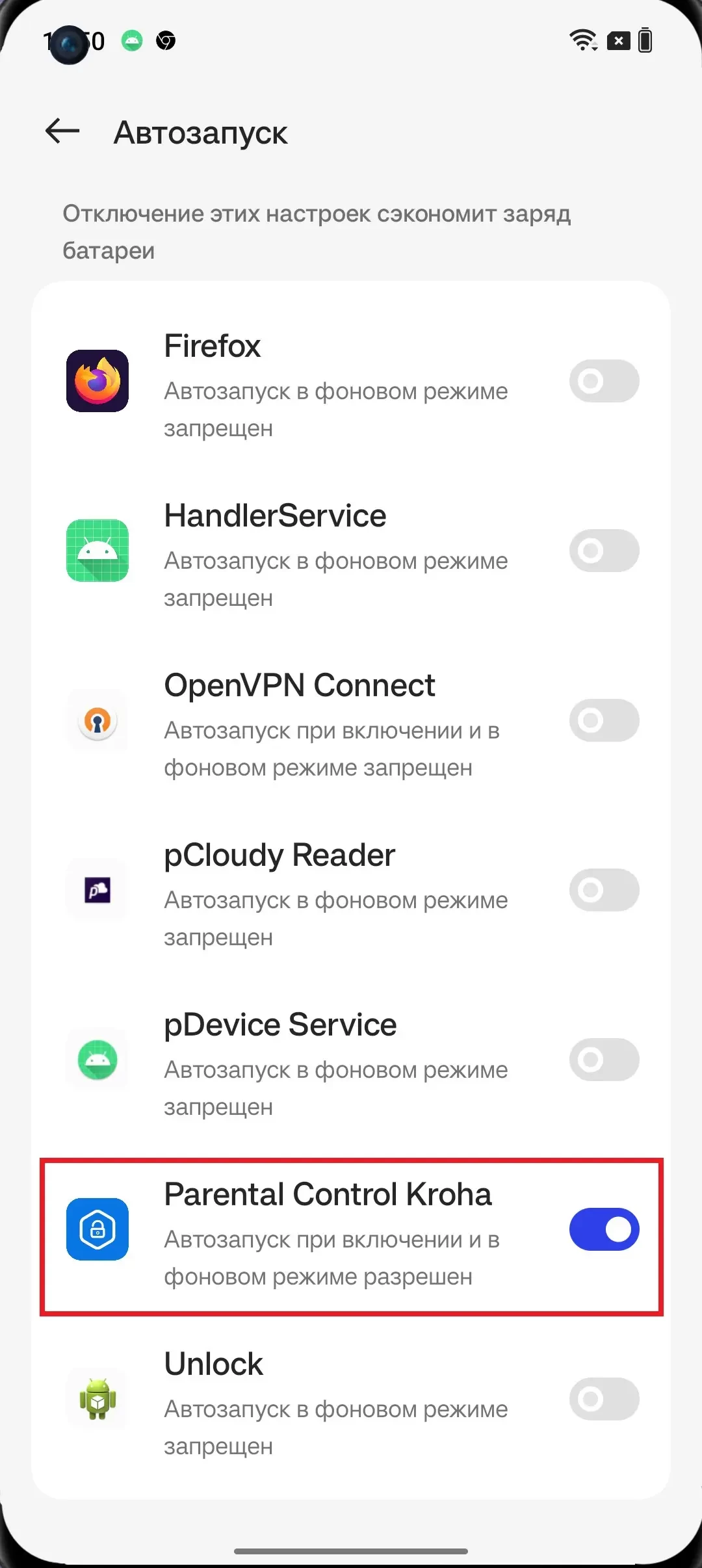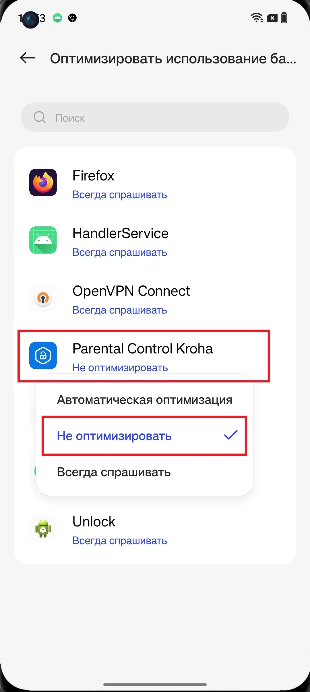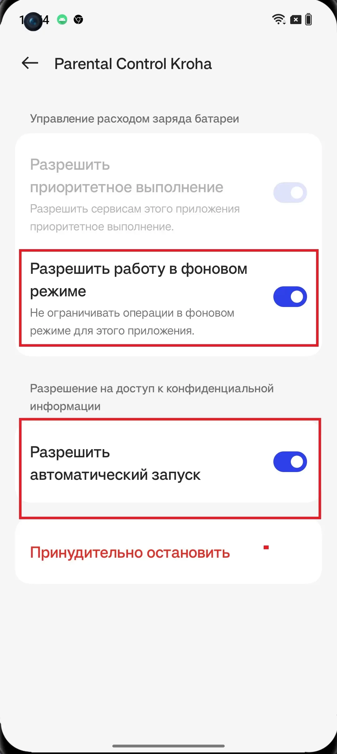 Как обеспечить работу в фоновом режиме Parental Control Kroha на OnePlus?