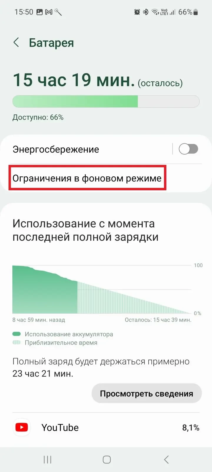 - Вернитесь в корневое меню приложения "Настройки" > раздел "Обслуживание устройства" > перейдите в "Батарея" > Ограничения в фоновом режиме > проверьте, чтобы приложение Parental Control Kroha не было добавлено в спящие приложения.