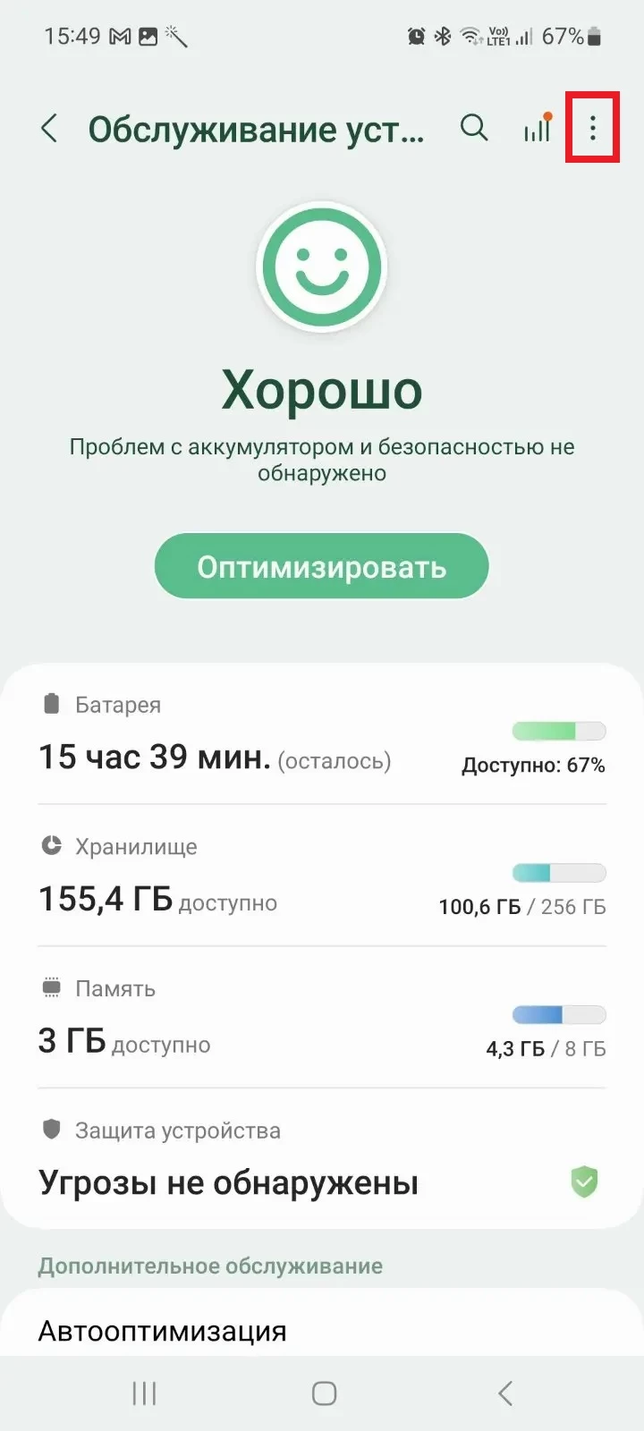 - Также в разделе "Обслуживания устройства" перейдите в "Батарея" откройте > пункт "Режим питания" > выберите опцию "Высокая производительность" и отключите "Адаптивный режим питания" > вернитесь на шаг назад и в верхнем углу экрана нажмите на иконку меню (три вертикальные точки) > откройте меню "Настройки" > отключите все переключатели.
