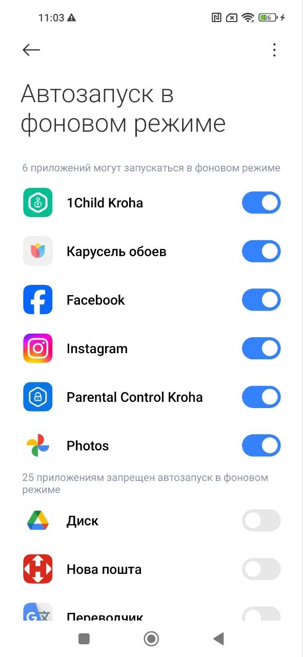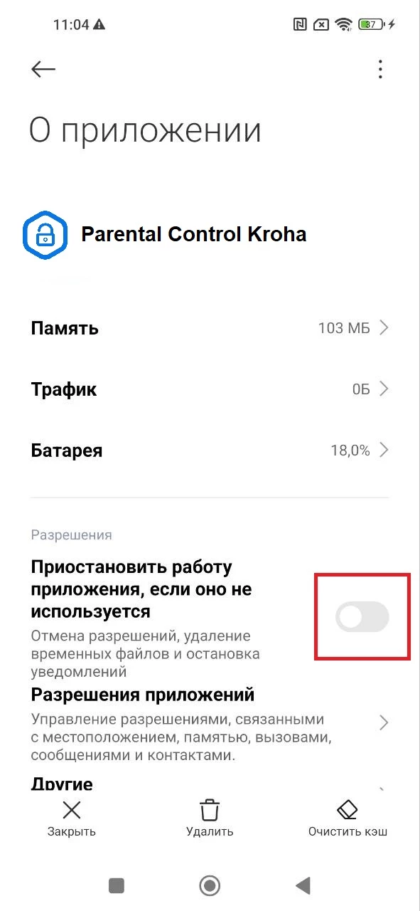 Как обеспечить работу в фоновом режиме Parental Control Kroha на Xiaomi?