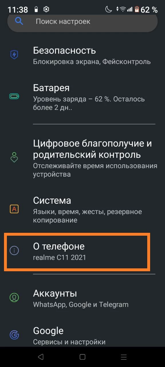- Перейдите в раздел "О телефоне";